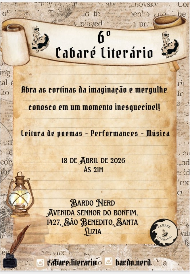 Vem aí a 6ª edição do Cabaré Literário. 🎭