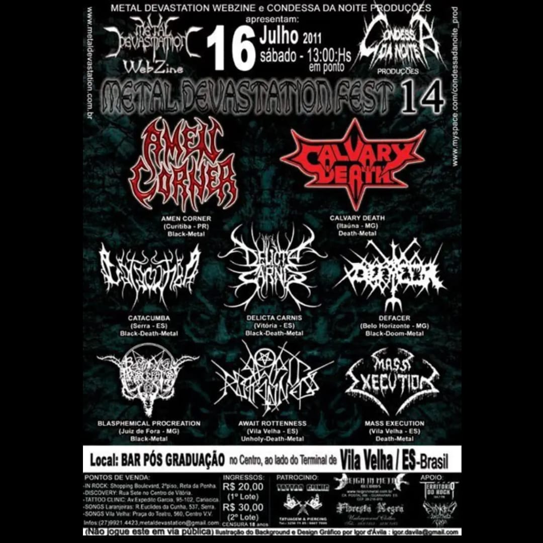 Ao longo desses 20 anos, ininterruptos, foram mais 30 eventos produzidos, priorizando a produção underground Nacional e com algumas edições com bandas estrangeiras.O principal evento produzido pela Condessa da Noite Produções é o Metal Devastation Fest, que este ano vai para sua 20° edição.