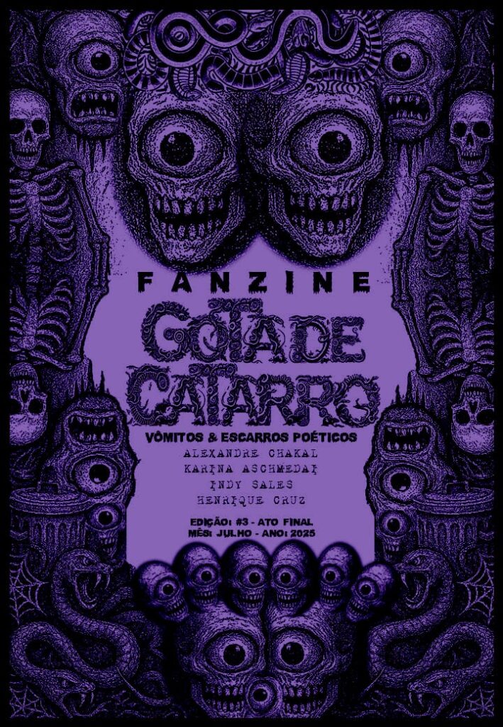Chegamos ao encerramento da trilogia do Fanzine Gota de Catarro, e, desta vez, agregamos dois convidados: Henrique Cruz, editor da Folha Subterrânea, de São Luís, Maranhão, e a escritora e poetisa Indy Sales, de Ouro Preto, Minas Gerais.