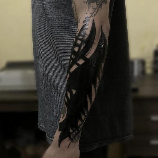 Ilustradora e tatuadora, trabalha com os estilos dark/blackwork, blackout e com escarificações.