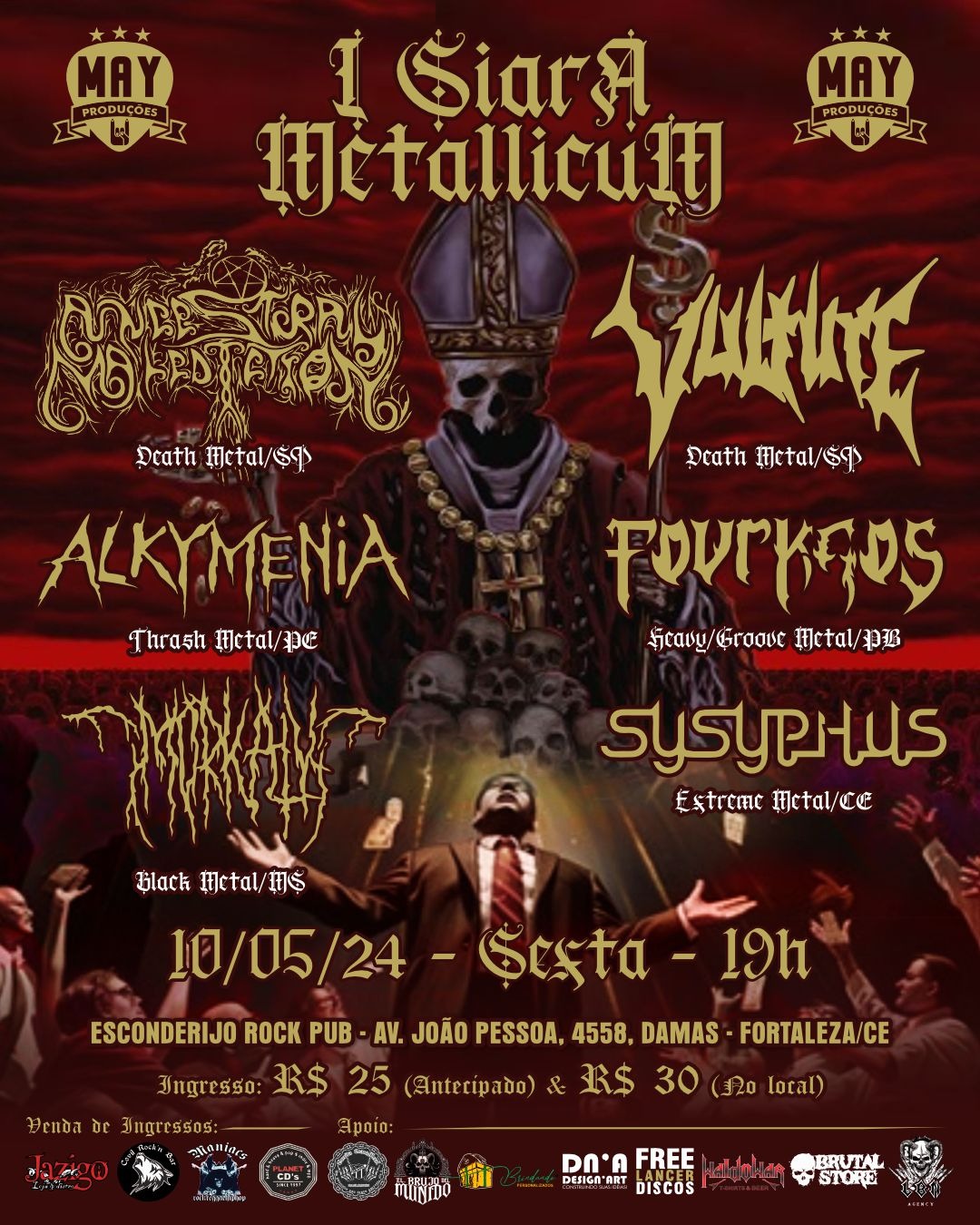 Especializada nos subgêneros mais extremos do metal, como Black, Doom, Death e Thrash, a May Produções se destaca na cena underground Nordestina como uma produtora com mulheres à frente. Em 2024 a May Produções continuará seguindo com apoio ao underground , iniciando mais uma jornada de produção em 2025 com Cerberus Ira Fest – Ato II/Hades.