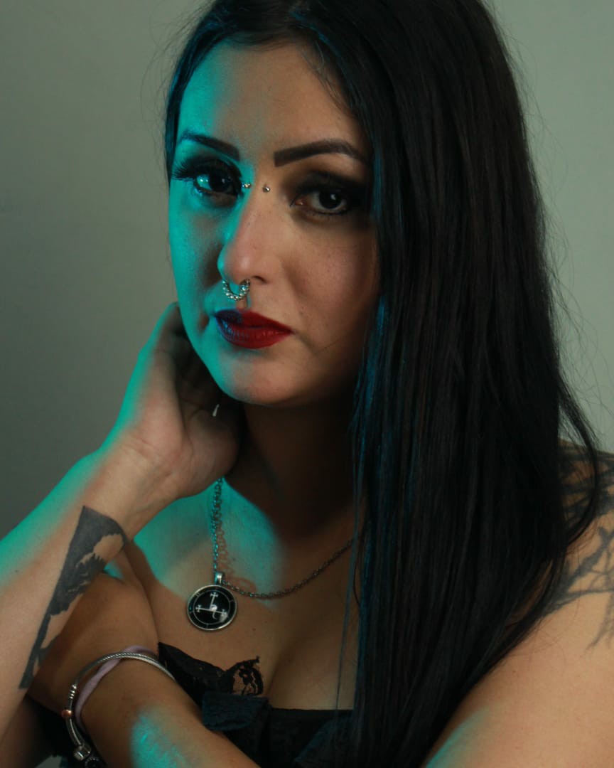 Meu nome é Drusila Imp, sou Dominatrix e modelo alternativa. Tenho 30 anos . Eu curto post punk, ebm, bastante Darkwave…diversas vertentes do metal, desde hard rock ao Black metal.