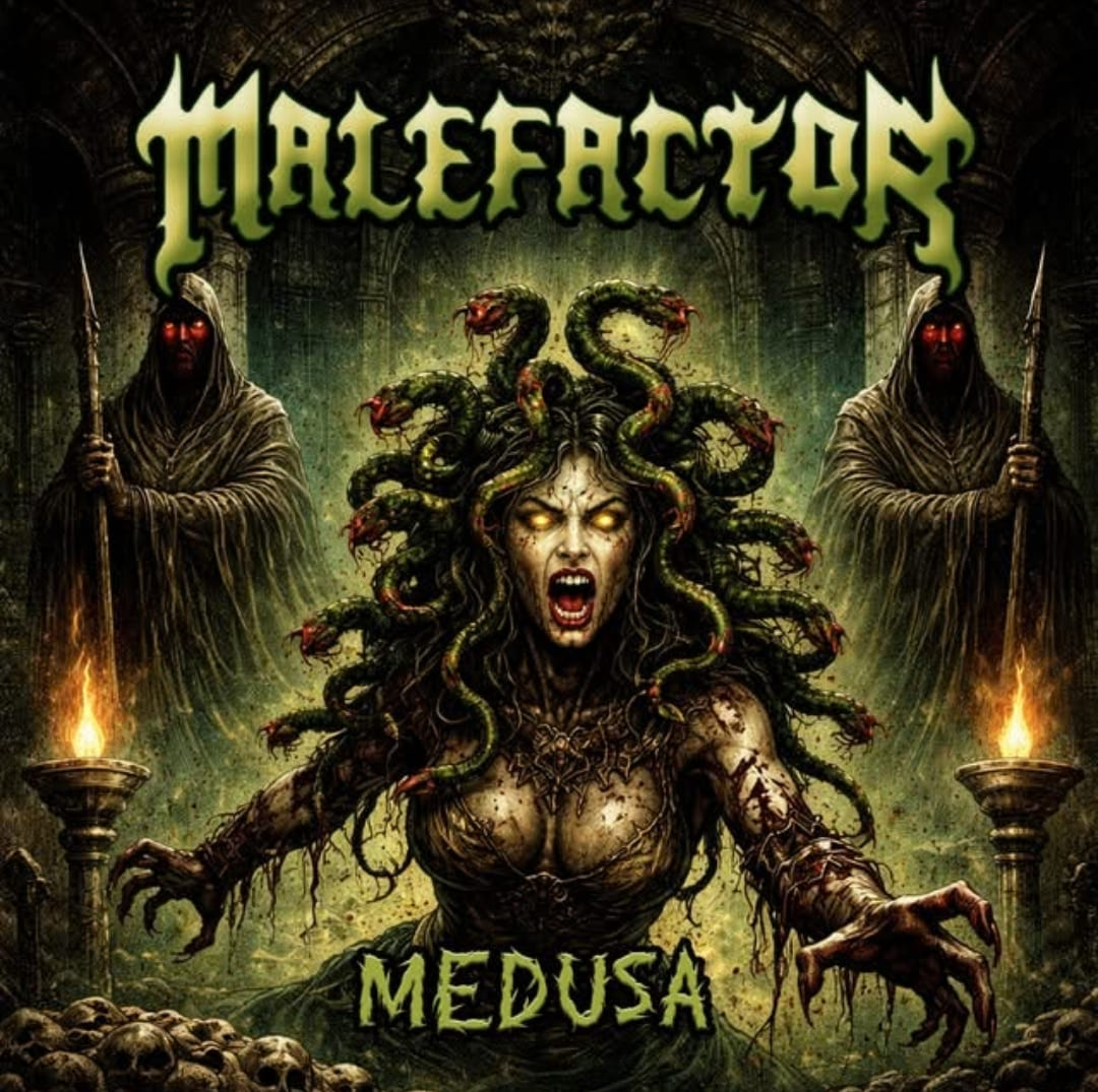 Com “Medusa”, o MALEFACTOR reafirma sua posição como uma entidade implacável no cenário underground, fundindo mitologia ancestral com a mística sonora e metalica contemporânea. Esta não é apenas uma música, é um feitiço sonoro, um convite para encarar o olhar da morte… e jamais retornar.