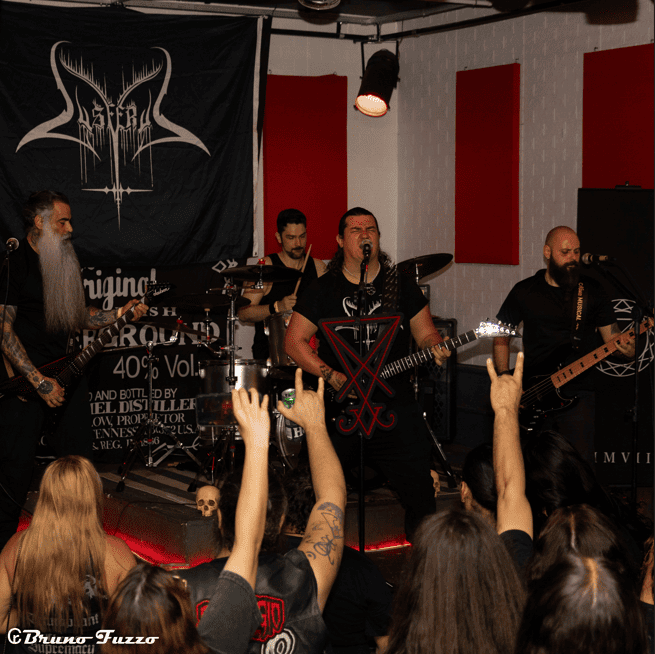 A banda que deu início à noite foi a LUSFERUS de Ribeirão Preto, com uma performance eletrizante, eles conseguiram captar a atenção de todos os presentes, transportando-os para um universo sonoro único. A fusão de riffs poderosos com uma bateria pulsante, vocais guturais e rasgados fez com que a energia no evento atingisse seu ápice.