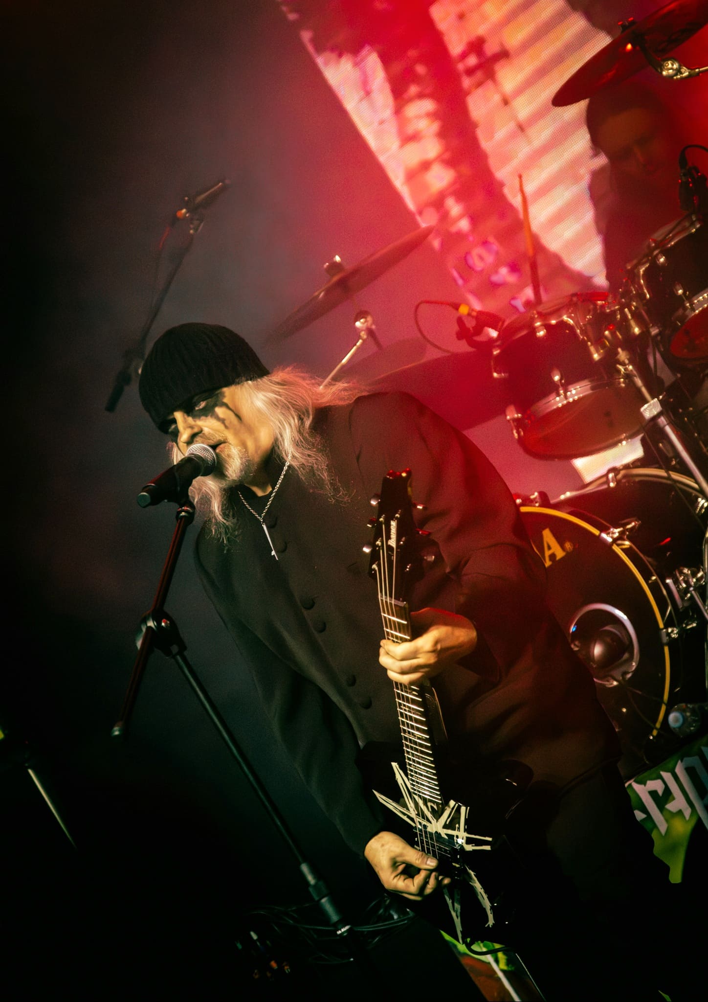 Fechando o festival, a banda mais aguardada por mim e acredito que pela maioria, CELTIC FROST, mas sob o nome TRIPTYKON, que todo mundo chama de CELTIC FROST no final das contas. Assisti 80% do show ao lado de Stefan “Necroabyssious” e Stratos Kountouras do VARATHRON, que subiram correndo do subsolo do Fest e ainda usando corpse paint para não perderem o show dos suíços. Começa a avalanche sonora da “Geada Celta” e logo de cara meteram cinco clássicos imortais: “Circle of the Tyrants”, “The Usurper”, “Return to the Eve”, “Into the Crypts of Rays” e “Procreation (of the Wicked)” (na versão mais Sepultura possível como bem me apontou meu irmão Mateus “Spyke”). Partiram para duas não tão conhecidas, “Ground” do álbum “Monotheist” e a dispensável “Sorrows of the Moon” do “Into the Pandemonium”. Prosseguiram esfriando a plateia com a ultra mega lenta “A Dying God Coming into Human Flesh”. Eis que surge “Dethroned Emperor” e a plateia de zumbis volta à vida, buscando os últimos resquícios de energia. Antológico. Peso de toneladas. “Dawn of Meggido” levou meu pescoço a gritar socorro, mas ao invés de tocarem “Necromantical Screams” como fizeram em seus últimos shows, pularam para “Synagoga Satanae”, talvez a música mais doom de toda a carreira de Tom Warrior. Definitivamente não é uma música para encerrar o show. Que troca horrível. O CELTIC FROST fez um show nota oito, quando podia ter feito nota 10, mas por uma opção artística. A realidade é que como era um show tributo a eles mesmos, talvez fosse uma chance de repetir a sensação nostálgica total de quando Tom Warrior trouxe o Triumph of Death para o SETEMBRO NEGRO em 2023, que obviamente, todos sabem que é o Helhammer com outro nome. Warrior quase sempre foi um gênio imprevisível e por isso, como todo gênio imprevisível, comete muitos acertos e muitos erros. Nota oito é uma nota muito alta e que eu darei ao CELTIC FROST e ao Festival como um todo. Foi pro trono. Três dias sensacionais para a música das trevas.
