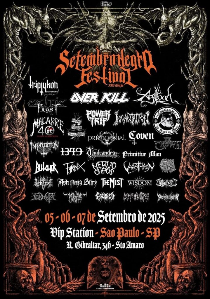 Tags: 1349 aggaloch ash nazg búrz butcher Candlemass Celtic Frost Coven darkened nocturn slaughtercult escafism feretro Festival imprecation leprovore lucifer rex lucifer rex extreme portal lucifer rex extreme web portal lucifer rex mag lucifer rex magazine lucifer rex portal lucifer rex web lucifer rex web portal MORKALV necrofilosophy necromantticu nervochaos Orthostat overkill power trip primitive man primordial setembro negro setembro negro 2025 the crown the mist thulcandra Triptykon tumba produções tyranex varathron vermin womb wisdom
