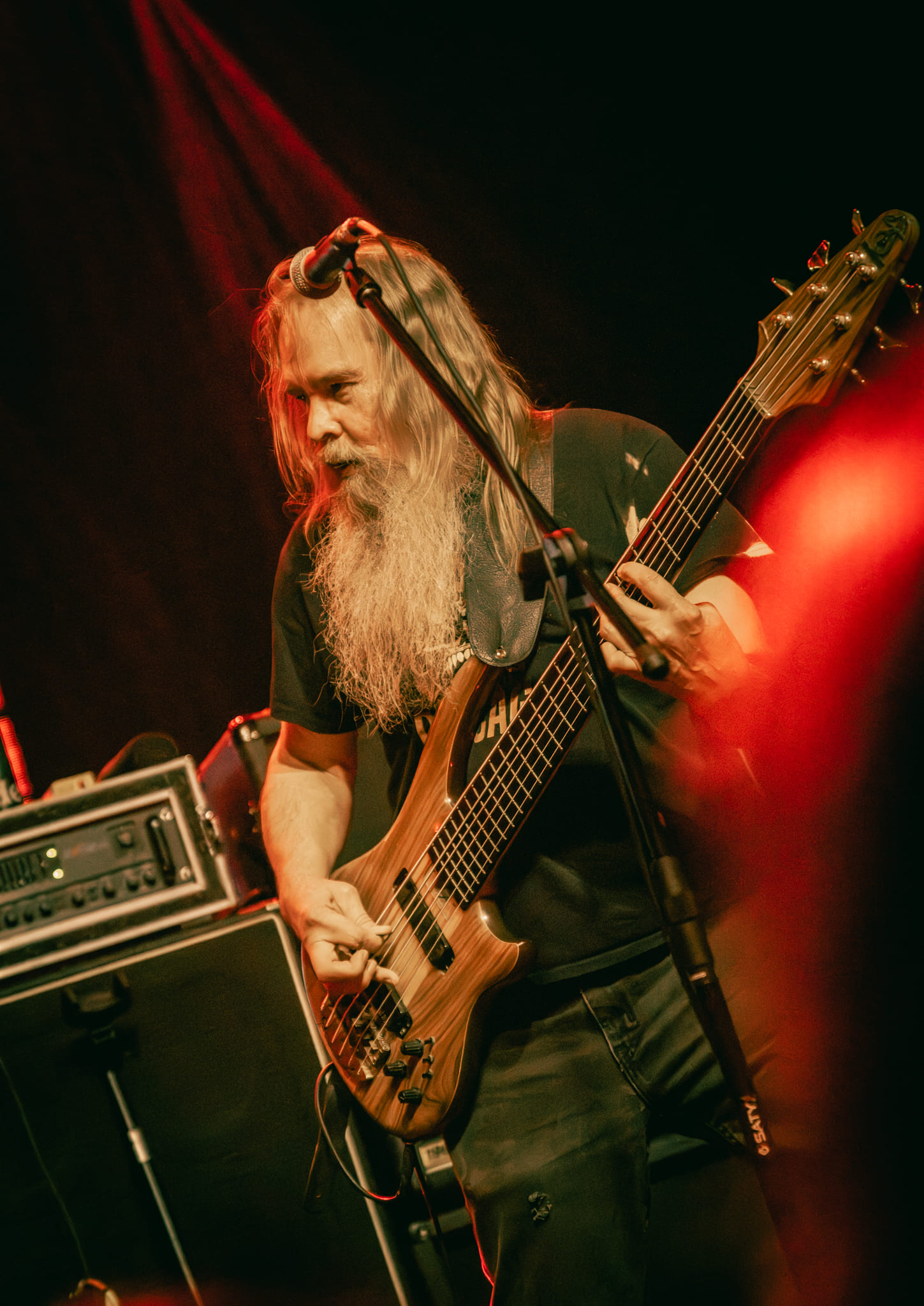 Usando a capa do EP “The Circle of the Crow” no telão durante todo o show, o THE MIST  era uma das bandas que eu mais queria ver, principalmente pela entrega sempre matadora de Vladimir Korg. Totalmente fora da curva, Korg parece cada vez mais precisar de uma camisa de força enquanto canta, com suas expressões de tormento e sua voz inigualável. O set da banda ao que parece teve que ser ainda mais reduzido e a banda preferiu tocar quase todo o EP, a nova “Gepetto’s Song” e somente duas músicas antigas “The Hangman Tree” e “Peter Pan Against the World”. Sei que em um festival underground tocar algo mais novo é fundamental para que a banda mostre o quanto ainda é relevante, mas todo mundo ficou com aquela sensação de que o set deveria ter privilegiado os sons antigos. Execução perfeita dos músicos, palco lindíssimo, mas o THE MIST (em minha opinião) merecia um set maior pela importância histórica. Até por isso mesmo devem ter sido escolhidos para tocar mais cedo e assim criar coragem para que as pessoas chegassem logo no início do domingo. Tocaram para no máximo 1/3 do público das bandas que tocaram mais tarde e ficou essa sensação de que o set list não foi bem escolhido.