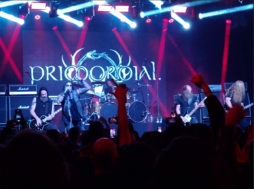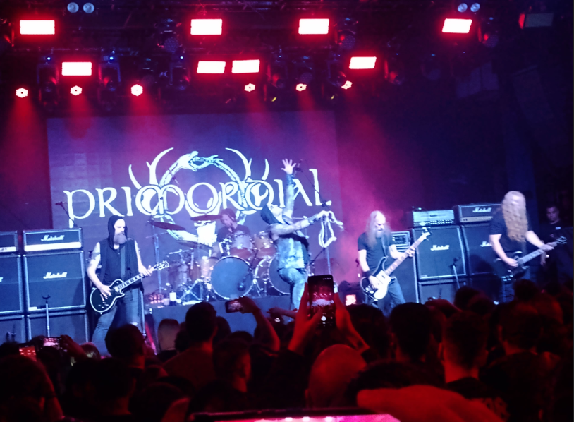 A ansiedade foi chegando, pois o PRIMORDIAL era uma das bandas que eu mais queria ver. Com seu som épico e hipnótico, em que geralmente dois ou três riffs são repetidos por músicas às vezes por cerca de 8 minutos, era esse transe que eu buscava no show dos Irlandeses. O fantástico e performático vocalista A.A. Nemtheanga entrou com uma corda no pescoço com o conhecido nó de forca. Sua presença de palco é tão avassaladora que rouba toda a cena. Ele literalmente salvou o show, pois as guitarras estavam muito baixas enquanto o baixo acabava tomando conta do PA. O show foi prejudicado pela equalização da banda, mas mesmo assim é muito emocionante ouvir faixas como a fantástica “The Coffin Ships” e a grande “Empire Falls” com toda sua atmosfera que lembra muito o Bathory na fase “Blood on Ice”. Uma pena que não conseguiram mixar bem o som e espero que voltem em outra edição. Bandaça. Ainda não foi desta vez que ouvi a sensacional “The Golden Spiral”, pra mim a melhor música de toda a carreira dos irlandeses malditos.