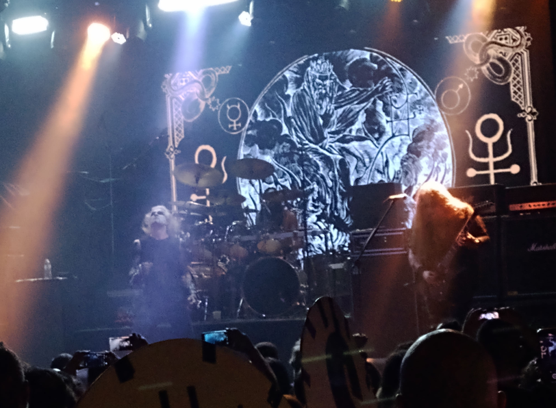 Sei que muitos irão discordar, mas não gostei tanto assim do show do COVEN. Óbvio que duas coisas são inegáveis: a banda tem uma das melhores aberturas de show do mundo (é de arrepiar ver a vocalista entrando no palco em um caixão e realizar uma Missa Negra em frente a quase 2000 pessoas) e o fato de que Jinx Dawson coloca à prova todo o ateísmo mundial, pois, liderando a banda desde 1967 e cantando sobre pactos satânicos, o fato é que Jynx Dawson do alto de seus 75 anos continua lindíssima e parecendo ter metade da idade. Tem coisa séria aí. Das muitas lendas sobre a banda (que hoje conta somente com ela da formação original), duas em especial se referem ao Black Sabbath. Primeiro que o COVEN já tinha uma música com este nome no disco de 69, antes do full lenght inicial dos criadores do metal. Segundo que o baixista original se chamava Oz Osborne, enquanto o Príncipe das Trevas apareceu com o nome Ossie Osborne no primeiro disco do Black Sabbath, somente depois sendo conhecido como Ozzy Osbourne.  Mas o que não gostei do show? Infelizmente a voz da bruxa já não entrega nem de longe a mesma qualidade da época em que chegava a ser comparada com Janis Joplin em uma versão das Trevas. Nem de longe. Fato é que na hora de “Wicked Woman” ninguém ligou pra isso e o Festival pegou fogo. Claro que não serei injusto com essa entidade da música, os vocalistas quase sempre perdem a voz com a chegada da velhice, mas o fato é que a achei meio perdida em algumas partes, a despeito do instrumental estar perfeito. E naquela banda, que não é uma banda de metal, a estética satânica e a voz dela eram certamente os pontos altos. Foi bom, mas muito longe de “melhor show da noite” como ouvi de algumas pessoas.