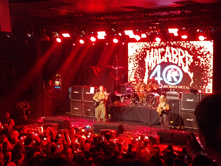 Até aquele momento o Imprecation era o show que mais tinha me impressionado no dia, mas bastou o MACABRE começar seu set para deixar a todos boquiabertos. Logo de cara, “Zodiac”, com um cidadão vestido com as vestes do serial killer conhecido como Zodiáco sobe ao palco, causando uma mistura de hipnose com desconforto, já que apontava incessantemente uma arma de fogo para a plateia. Em tempos loucos, quando pessoas matam músicos no palco, percebi que as pessoas mais a frente ficavam desconfortáveis em ter um trabuco apontado para suas fuças. Pronto, já tinham ganhado toda a atenção. Foram desfilando suas músicas ultra bem tocadas, mesclando histórias de serial killer com um humor pra lá de bizarro. É doentio demais ouvir “The Ted Bundy Song” enquanto a banda mescla Death metal com uma canção infantil e o ator entra no palco com uma máscara perfeita de Ted Bundy, com direito a braço enfaixado, maneira como ele enganava suas vítimas, pedindo ajuda e depois as golpeando antes de sequestra-las. Entre faixas como “Night Stalker” e “Vampire of Düsseldorf”, o guitarrista e vocalista Corporate Death falava sobre os “homenageados” das músicas e seus feitos doentios. Espetacular.