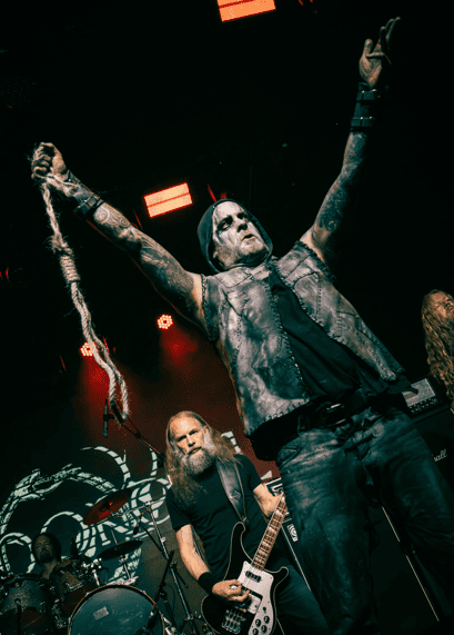 Eis que pela primeira vez no sábado, o palco Infernal faria jus ao seu nome, com o recinto abarrotado para ver a primeira apresentação dos belgas do BÜTCHER no país. O performático vocalista R. Hellshrieker logo notou a excelente recepção e virou o regente do caos, incentivando as rodas de mosh e os perigosos stage divings (que eram limitados devidos às pilastras e ao teto baixo do espaço), entre um gole e outro de whisky. A banda focou seu setlist nos seus dois últimos trabalhos, “666 Goats Carry My Chariot” (2020) e “On Fowl of Tyrant Wing” (2024), obtendo maiores respostas do público nas insanas “45 RPM Metal” e “Koraktor’s Iron Rule”.