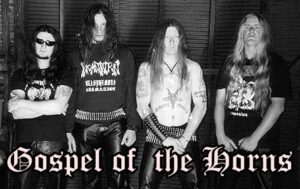 Vou começar pela mais velha, mais velha até mesmo que a Destroyer 666, Gospel of the Horns banda surgida em 1993 através do vocalista Shane Transvaal D (do Deinonychus) e Mark Howitzer. Em ordem Shane era vocal, Howitzer era baterista e havia um baixista chamado Anton que nunca chegou a registrar nenhum material com a banda. Algum tempo depois, se juntou a banda o Hellbutcher “Death Dealer” que gravou guitarra e baixo em alguns registros como a primeira demo da banda “The Satanist’s Dream” de 1994. Com essa demo, rapidamente, a Gospel of the Horns chamou atenção da gravadora Einstand Records.